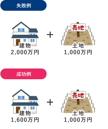 建物1,600万円+土地1,000円に予算を割り振る。