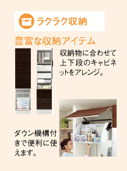 さらに使いやすい収納アイテムで洗面室が毎日キレイに片付きます。