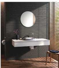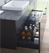 フローティングデザインで海外の雑誌で見るような空間に。美しい陶器製ボウルなど、こだわりのパーツで空間にも自分にもピッタリのスタイルが完成。