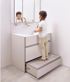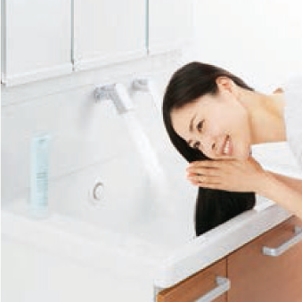 お肌のお手入れやメイクがしやすい、お子様にも使いやすいなど、機能満載の洗面室をご紹介します。