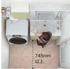 奥行き500mmのスリムな洗面台だから、狭い洗面室もテキパキと作業が行えるスペースが確保できます。