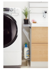 洗面空間に合わせてぴったりフィットするサイズにできるカウンター。キャビネットを組み合わせて収納力アップ。