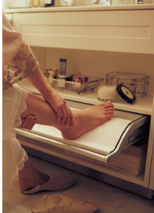 使うときだけ引き出せて、ラクな姿勢でケアできるフットケア専用台。