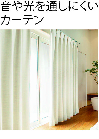 アクリル樹脂コーティング層を3層にすることで、通常のカーテンより音を通しにくくした遮音カーテン。遮光・遮熱効果も高めています。
