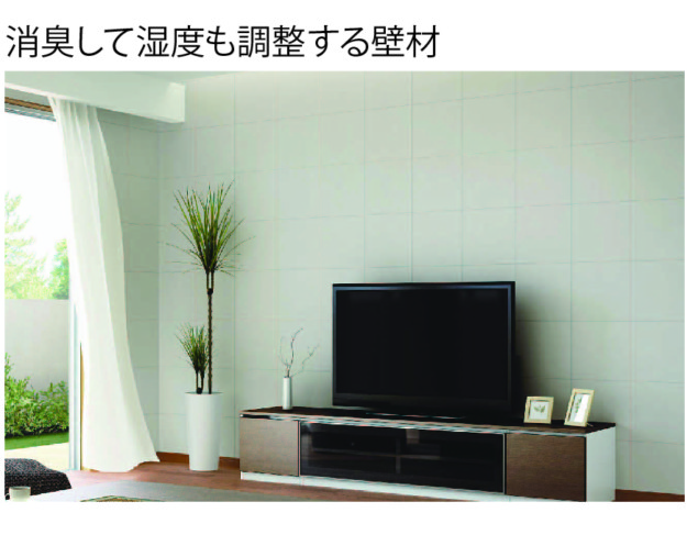 湿気を調整し、ニオイも軽減する壁材。両面テープと接着剤で施工も簡単。防汚加工でシミや汚れが付きにくい。