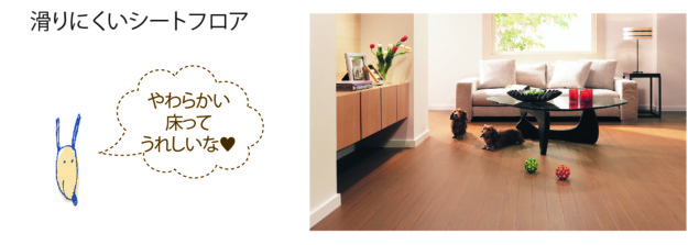 ペットの健康を考えて、滑りにくい床材や適度にクッション性のある床材を選んであげましょう。掃除の負担を考えて汚れが付きにくく、落としやすいことも大切です。