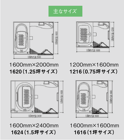 サイズは、戸建の場合0.75坪、1坪、1.25坪に対応するサイズが中心。そのほか1.5坪やメーターモジュールに対応するタイプもあります。